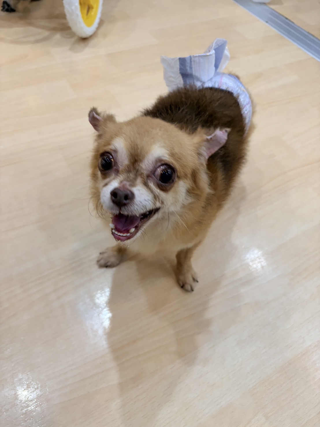 怖がりで繊細な一面もありますが、人が好きで甘えん坊です。 環境の変化に対応できるように練習中です。 お散歩も上手です。 不在時は上手にお留守番できています。 在宅中は室内フリーで生活しています。 トイレトレーニング中です。 マナーウエア着用にも抵抗はありません。 |