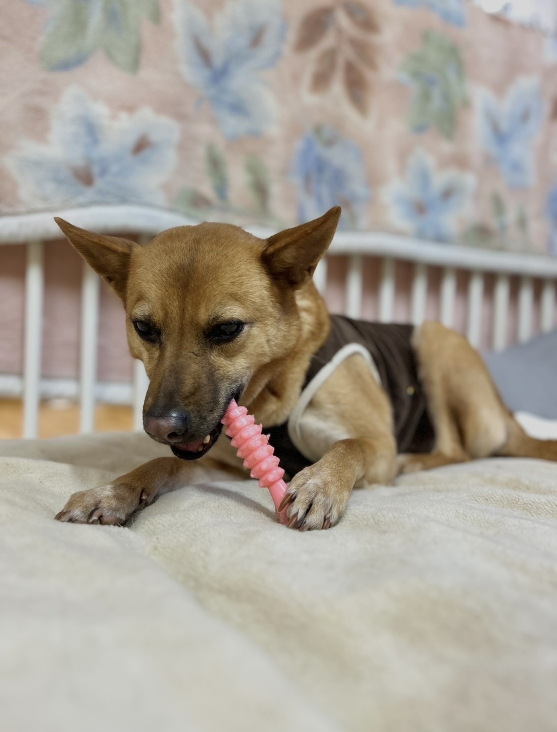 | 健康管理状態 | 基本的健康診断済み、ノミダニ駆除済み、混合ワクチン接種済み、狂犬病ワクチン接種済み マイクロチップ装着済み、避妊手術済み フィラリア陽性(毎月1度の投薬必要) |