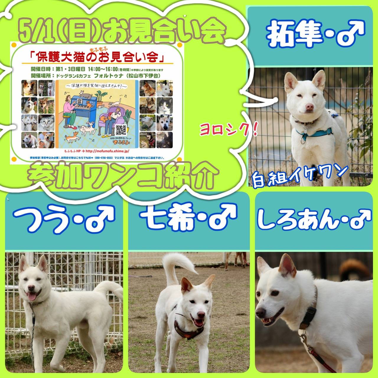 5/1(日曜日)お見合い会に参加するワンちゃんたちを紹介します。