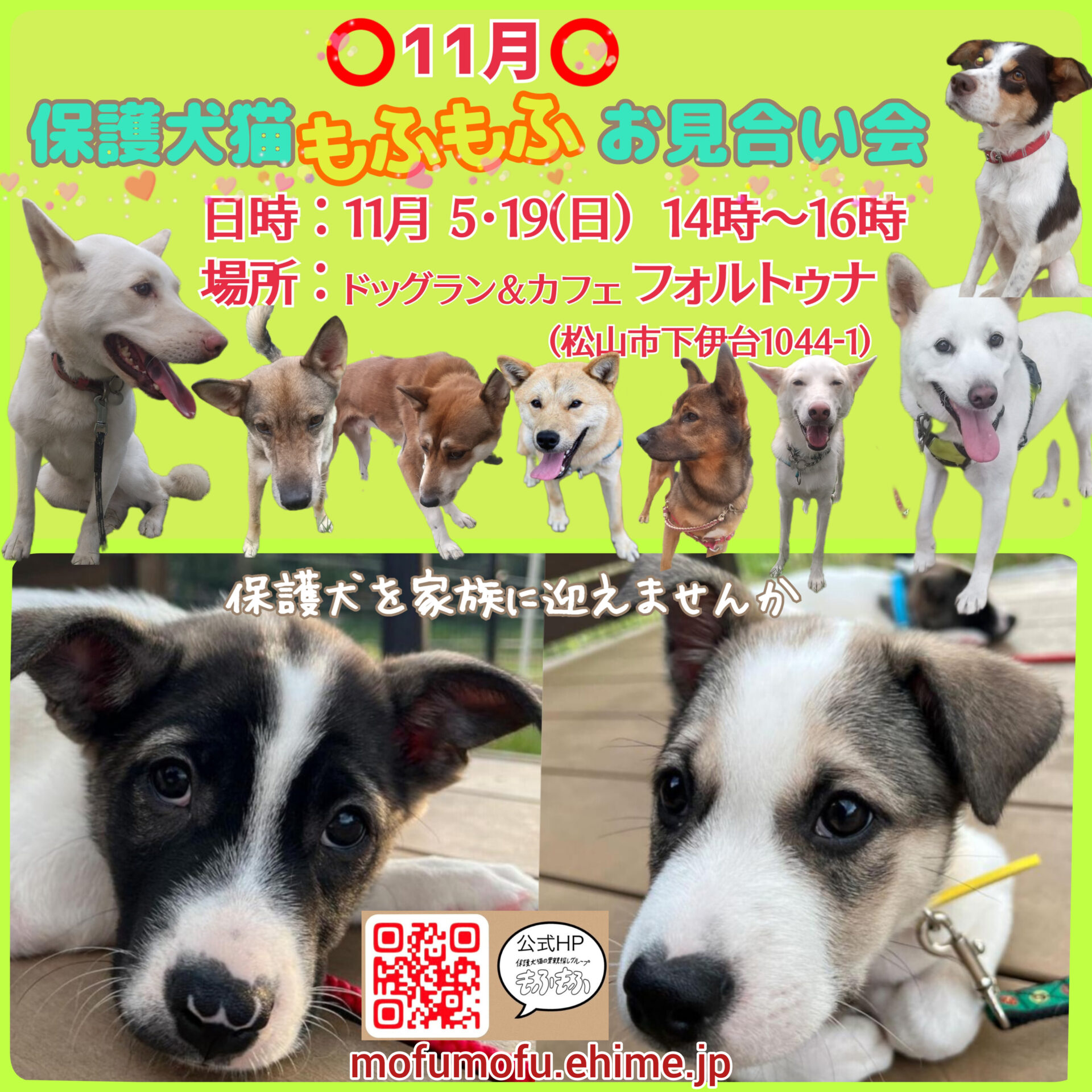 お見合い会やドッグラン(近々お散歩会予定)等参加型ボラや参加は出来ないけど拡散や宣伝ボラ、預かりボラ等々様々です。できる範囲、できる時のお手伝いで🆗。お問い合わせは→もふもふHP 迄