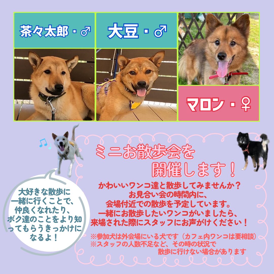 ※当日の天候、ワンちゃんの体調により予告なく参加しない場合があります。