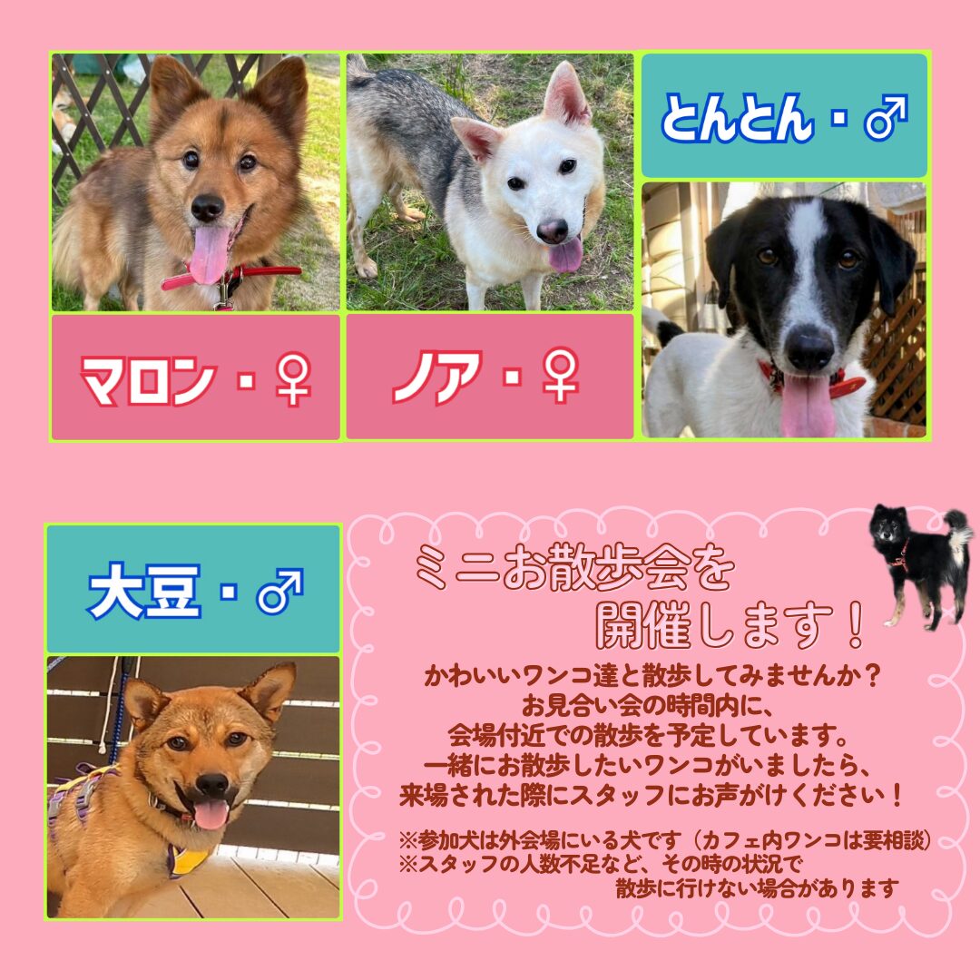 ※当日の天候、ワンちゃんの体調により予告なく参加しない場合があります。